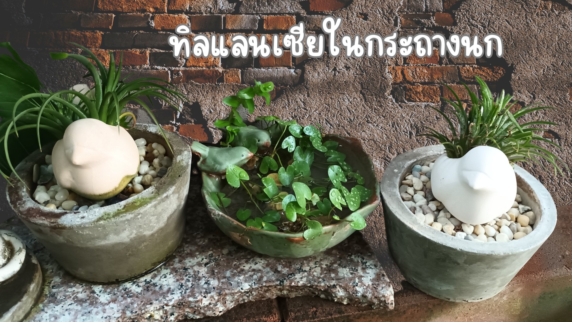 จัดสวนด้วยทิลแลนเซียกับกระถางนกน้อยน่ารัก