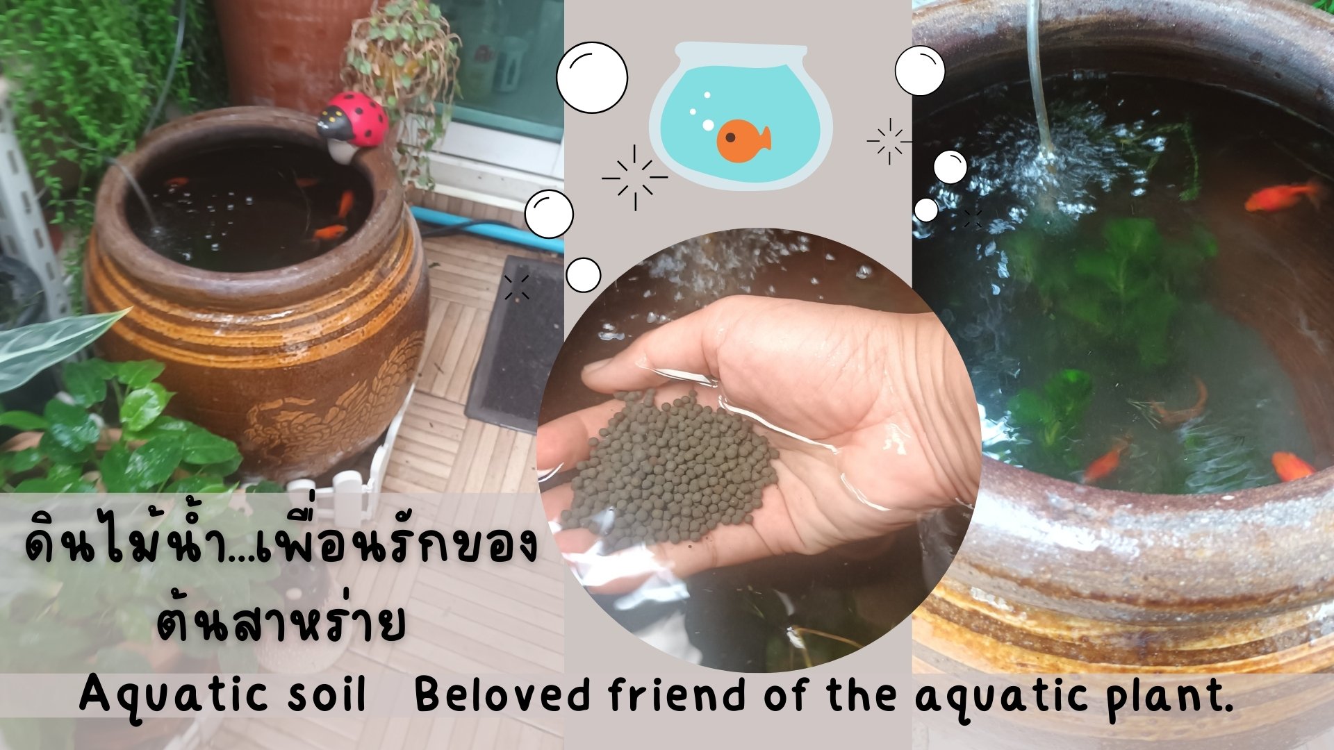 ก่อนวางลงโอ่งก็เพิ่มดินปลูกไม้น้ำลงไปสักหน่อย ซึ่งดินไม้น้ำ (Aquatic Plant Substrate) เป็นวัสดุพื้นฐานสำคัญในการปลูกพืชน้ำในตู้ปลาและอควาเรียม มีข้อดีหลายอย่างดังนี้: