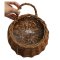 ตะกร้าสานแขวนผนังต้นไม้ปลอมใส่ของใช้ของตกแต่ง Woven wall-mounted basket for holding decorative items and supplies.