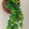 ต้นไม้เลื้อยปลอมประดิษฐ์ในตะกร้าหวายแขวนผนัง Artificial climbing plant in a wicker basket.
